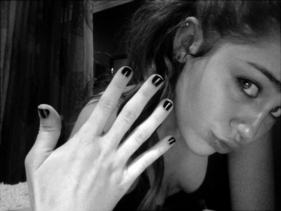 And these sorry-looking short nails are being done no favours dressed in such dark colours. Less Avril Lavigne and more Hilary Devey, pls.
