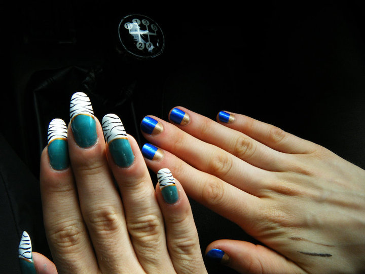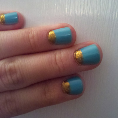Some girl has the blue/gold half-moon manicure our friend Frances did like a YEAR ago. Heh heh.