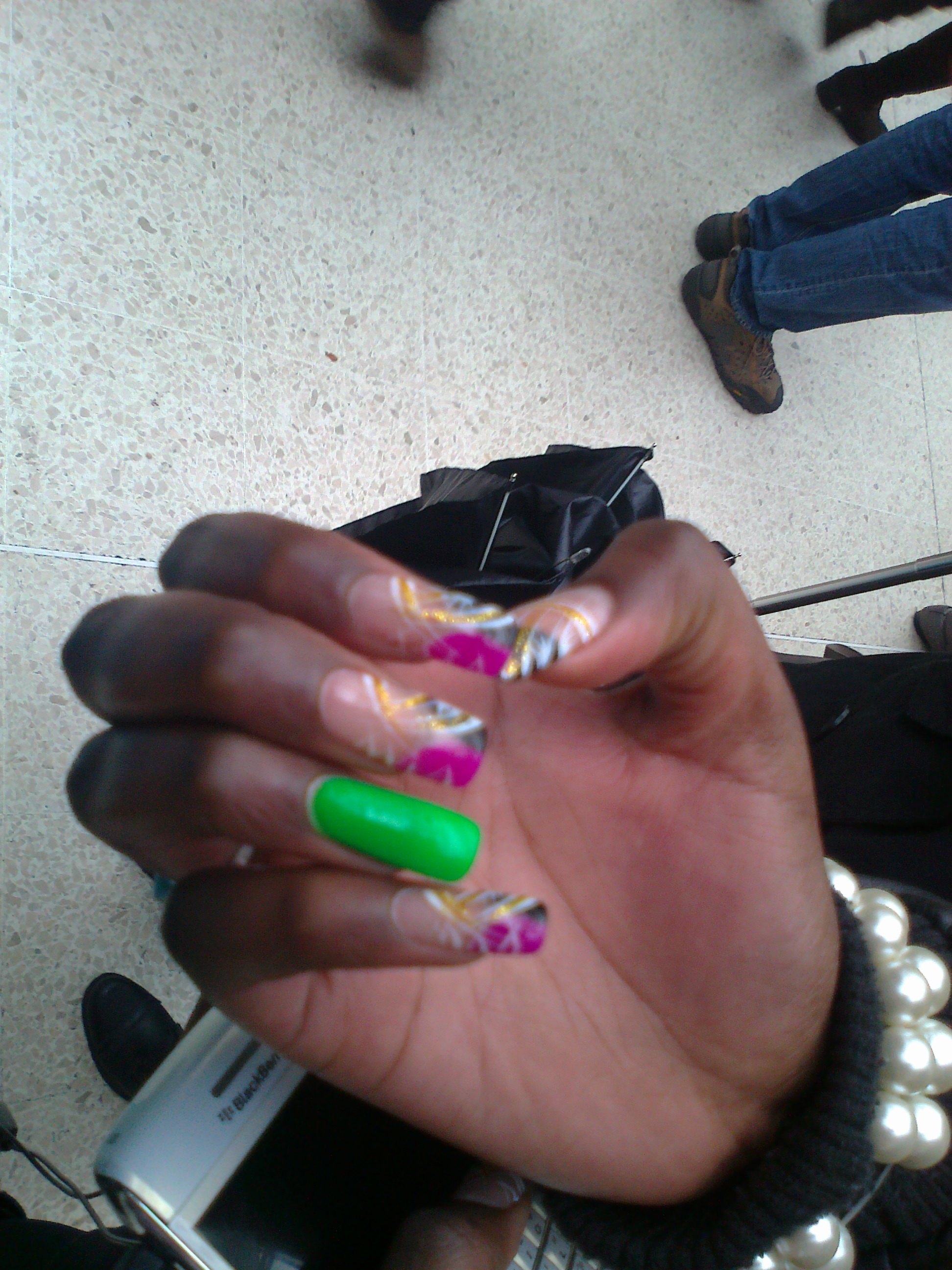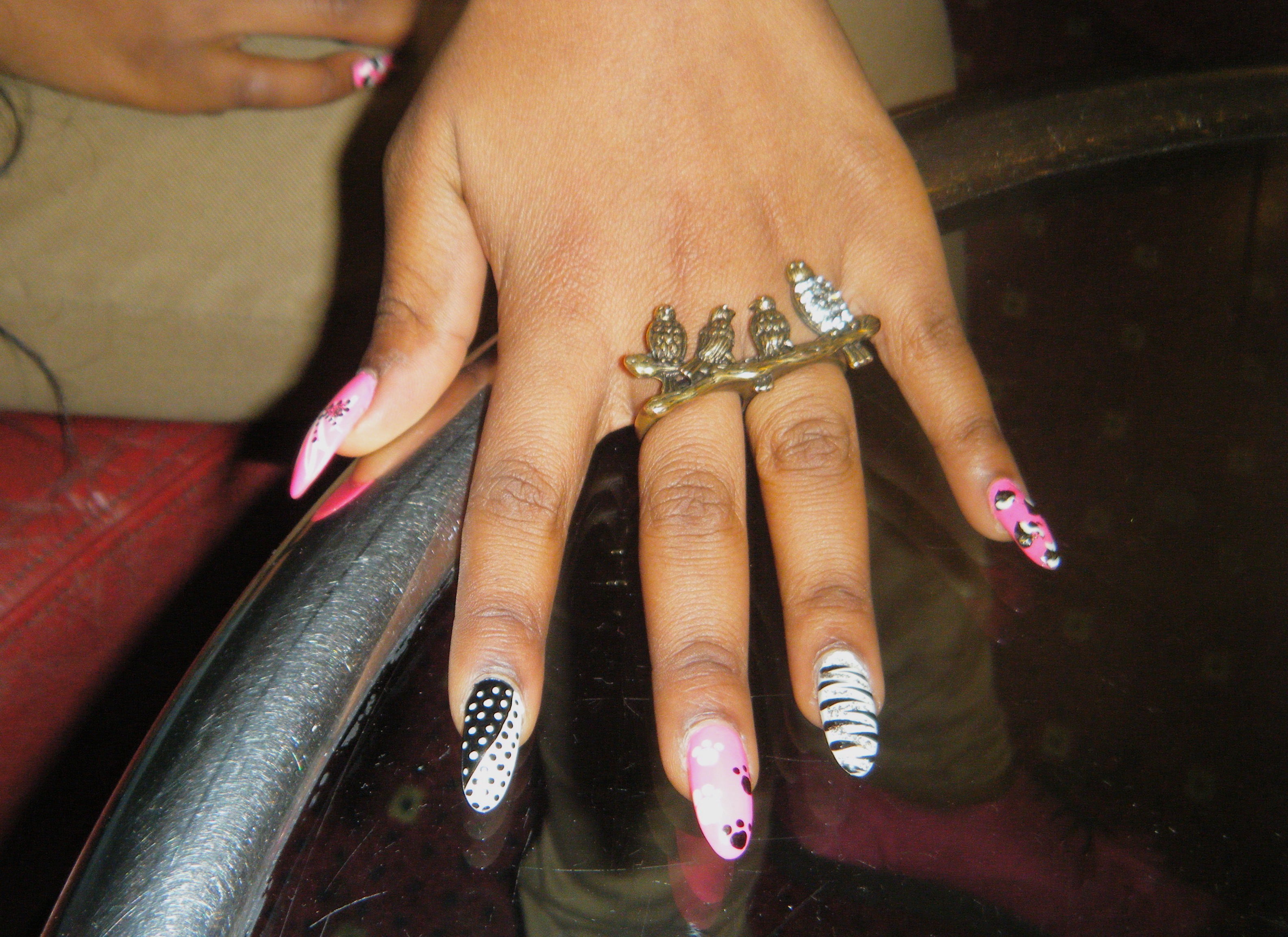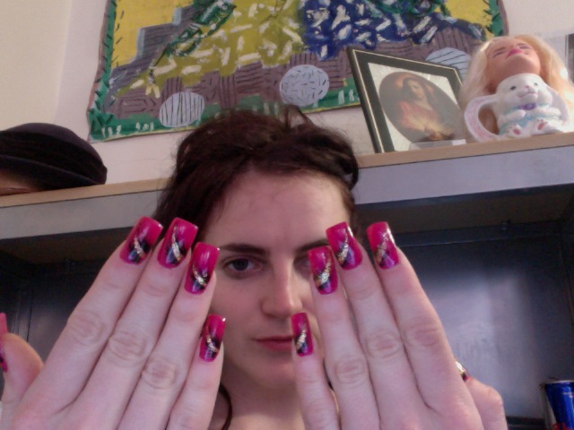 Liv, who is 22 and from Southhampton, sent this picture in all the way from San Francisco, and we can see why.- these nails are glorious, like fireworks across a pink sky, and certainly fit for a scandalous gutterslut Queen! YOU GOT SOME MONEY FO ME?!