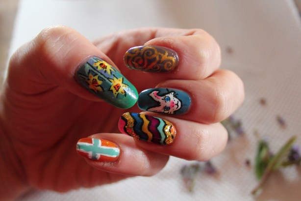 I am constantly amazed by the triumphs and challenges nail art presents. You would think that the white rabbit or the daffodils would be, by some margin, the trickiest nails here, and yet these designs have produced strong results, and the straight-forward looking crosses are the wonky villains letting the team down.